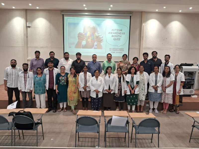 The Department of Pediatrics, KIMS, Karad, celebrated World Autism Acceptance Month in April 2025 with a series of engaging activities under this year’s theme, "Celebrate Differences." On 2nd April 2025, World Autism Awareness Day, a Handmade Poster Competition was organized, with active participation from medical, physiotherapy, and nursing students. The posters were evaluated by esteemed judges including Dr. Yugantara R. Kadam, Dean of KIMS, Karad; Dr. Anil Bhoi, HOD of Pediatrics; Dr. Mandar Ramesh Malawade, HOD of Pediatrics Physiotherapy; Dr. Vasantmeghna Murthy, Associate Professor of Psychiatry; Dr. Sabu Richard Abraham; and Dr. Leya Sara Samuel from the Department of Pediatrics. An interdepartmental Quiz on Autism was held on 10th April 2025, conducted by Dr. Leya Sara Samuel and moderated by Dr. Vinod Choudhary, Professor of Pediatrics, with enthusiastic participation from residents of Pediatrics, Psychiatry, and Physiotherapy. On 16th April 2025, an awareness program for healthcare workers was organized, which began with an inaugural ceremony followed by prize distribution for the poster and quiz competitions. The program featured insightful talks on "Introduction to Autism" by Dr. Parvathy Balakrishnan, "Role of Psychiatry in Autism" by Dr. Vasantmeghna Murthy, "Counselling and Psychotherapy" by Dr. Shailaja Patil, and "Autism and Physiotherapy" by Dr. Mandar Ramesh Malawade. The event was well attended by faculty members, nursing staff, medical students, nursing students, and physiotherapy students, contributing to a greater understanding and acceptance of autism.