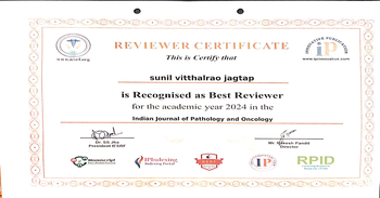We are proud to announce the significant contributions of Dr. Sunil Vitthalrao Jagtap to the Indian Journal of Pathology and Oncology during the academic year 2024.