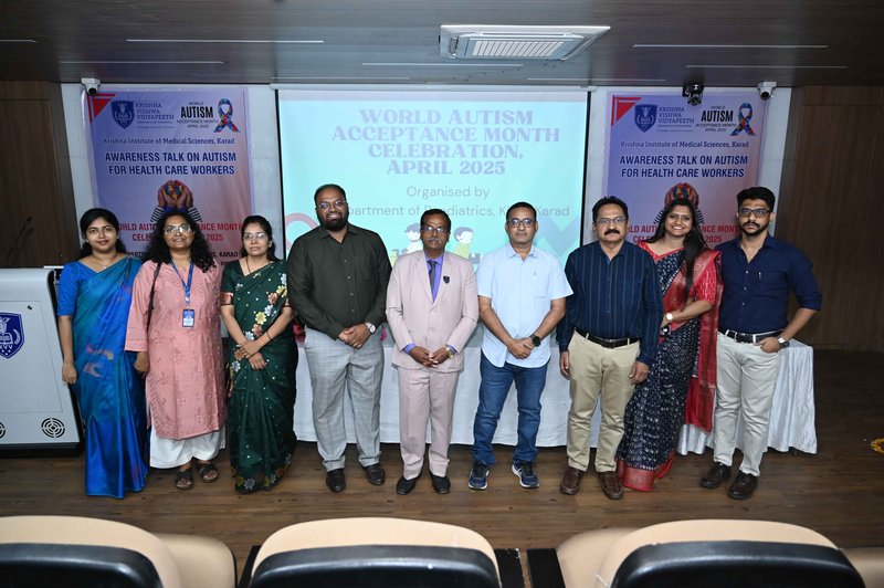 The Department of Pediatrics, KIMS, Karad, celebrated World Autism Acceptance Month in April 2025 with a series of engaging activities under this year’s theme, "Celebrate Differences." On 2nd April 2025, World Autism Awareness Day, a Handmade Poster Competition was organized, with active participation from medical, physiotherapy, and nursing students. The posters were evaluated by esteemed judges including Dr. Yugantara R. Kadam, Dean of KIMS, Karad; Dr. Anil Bhoi, HOD of Pediatrics; Dr. Mandar Ramesh Malawade, HOD of Pediatrics Physiotherapy; Dr. Vasantmeghna Murthy, Associate Professor of Psychiatry; Dr. Sabu Richard Abraham; and Dr. Leya Sara Samuel from the Department of Pediatrics. An interdepartmental Quiz on Autism was held on 10th April 2025, conducted by Dr. Leya Sara Samuel and moderated by Dr. Vinod Choudhary, Professor of Pediatrics, with enthusiastic participation from residents of Pediatrics, Psychiatry, and Physiotherapy. On 16th April 2025, an awareness program for healthcare workers was organized, which began with an inaugural ceremony followed by prize distribution for the poster and quiz competitions. The program featured insightful talks on "Introduction to Autism" by Dr. Parvathy Balakrishnan, "Role of Psychiatry in Autism" by Dr. Vasantmeghna Murthy, "Counselling and Psychotherapy" by Dr. Shailaja Patil, and "Autism and Physiotherapy" by Dr. Mandar Ramesh Malawade. The event was well attended by faculty members, nursing staff, medical students, nursing students, and physiotherapy students, contributing to a greater understanding and acceptance of autism.